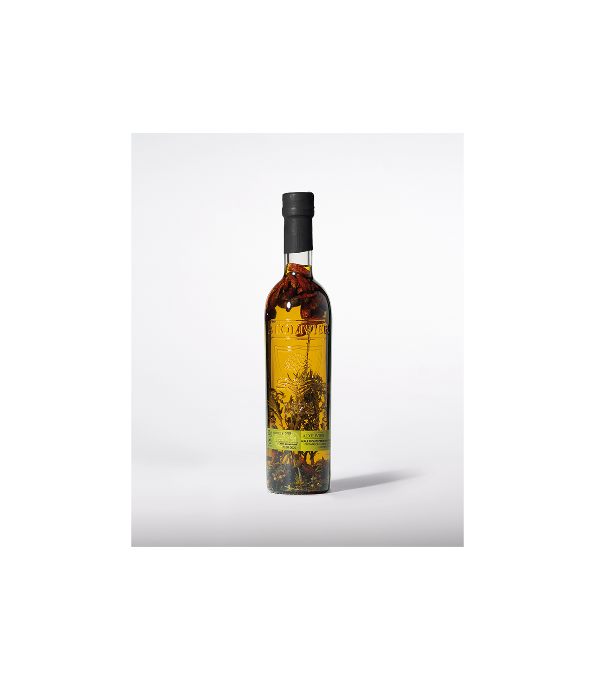 A quality oil, delicately infused using a traditional process to capture the flavors from fresh plants: a natural and gourmet alchemy, in a collector's bottle engraved to enhance your dishes and your cooking.
