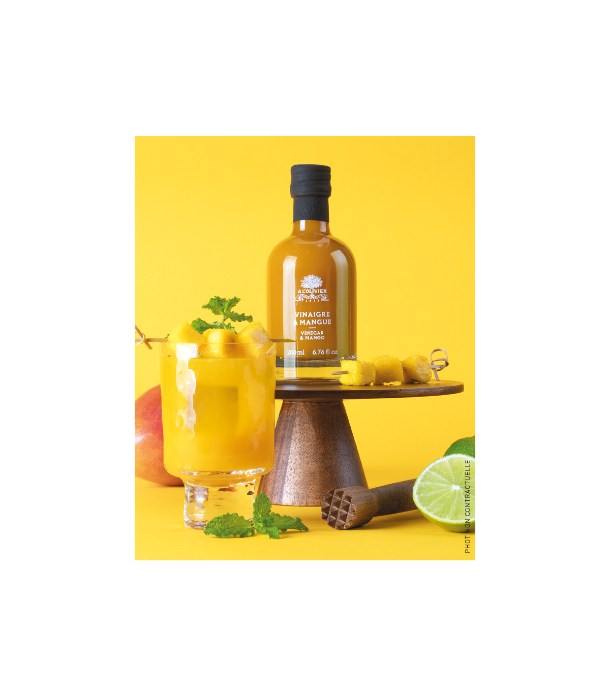A mild and smooth vinegar, made from a mixture of mango puree and vinegar.