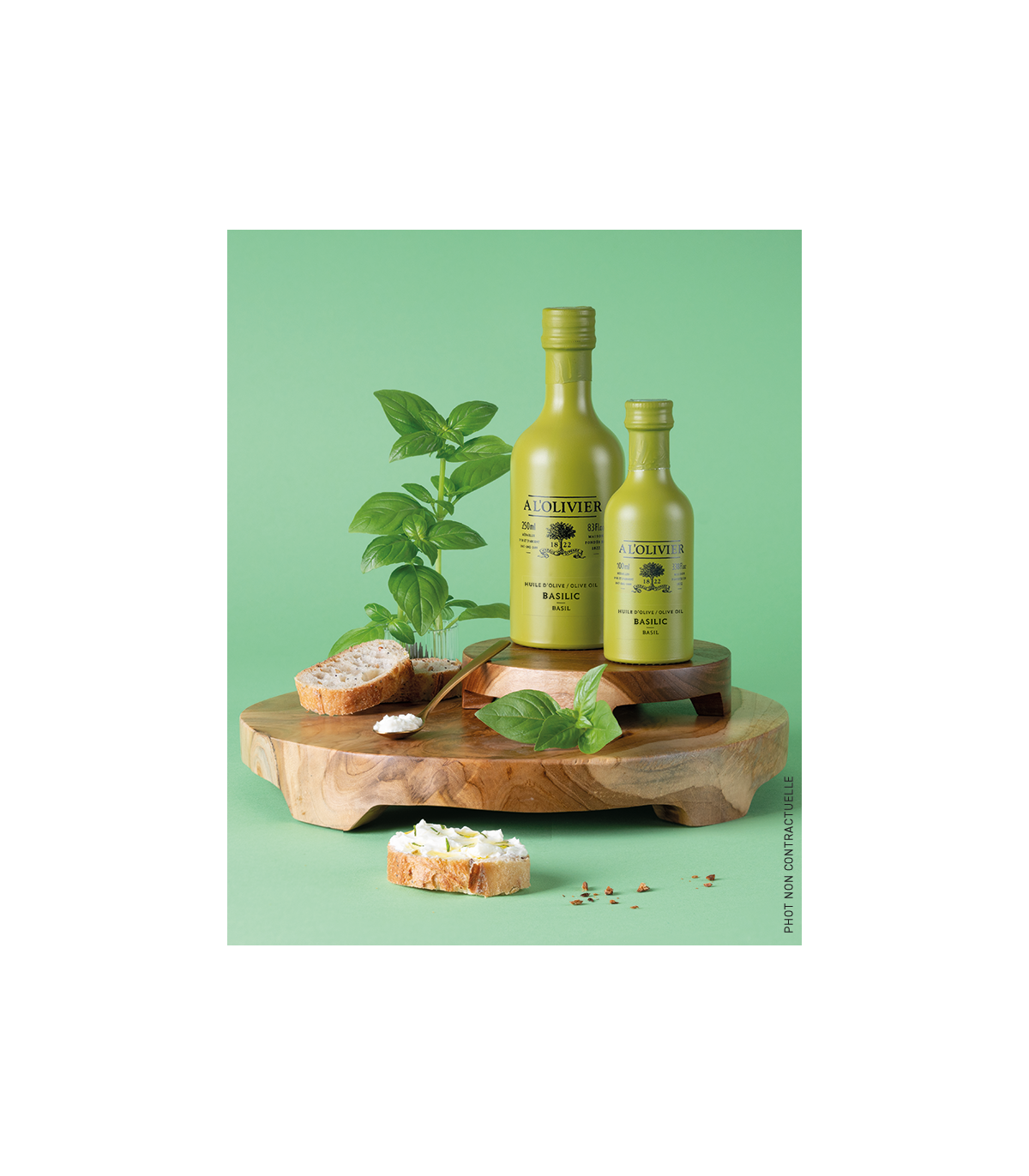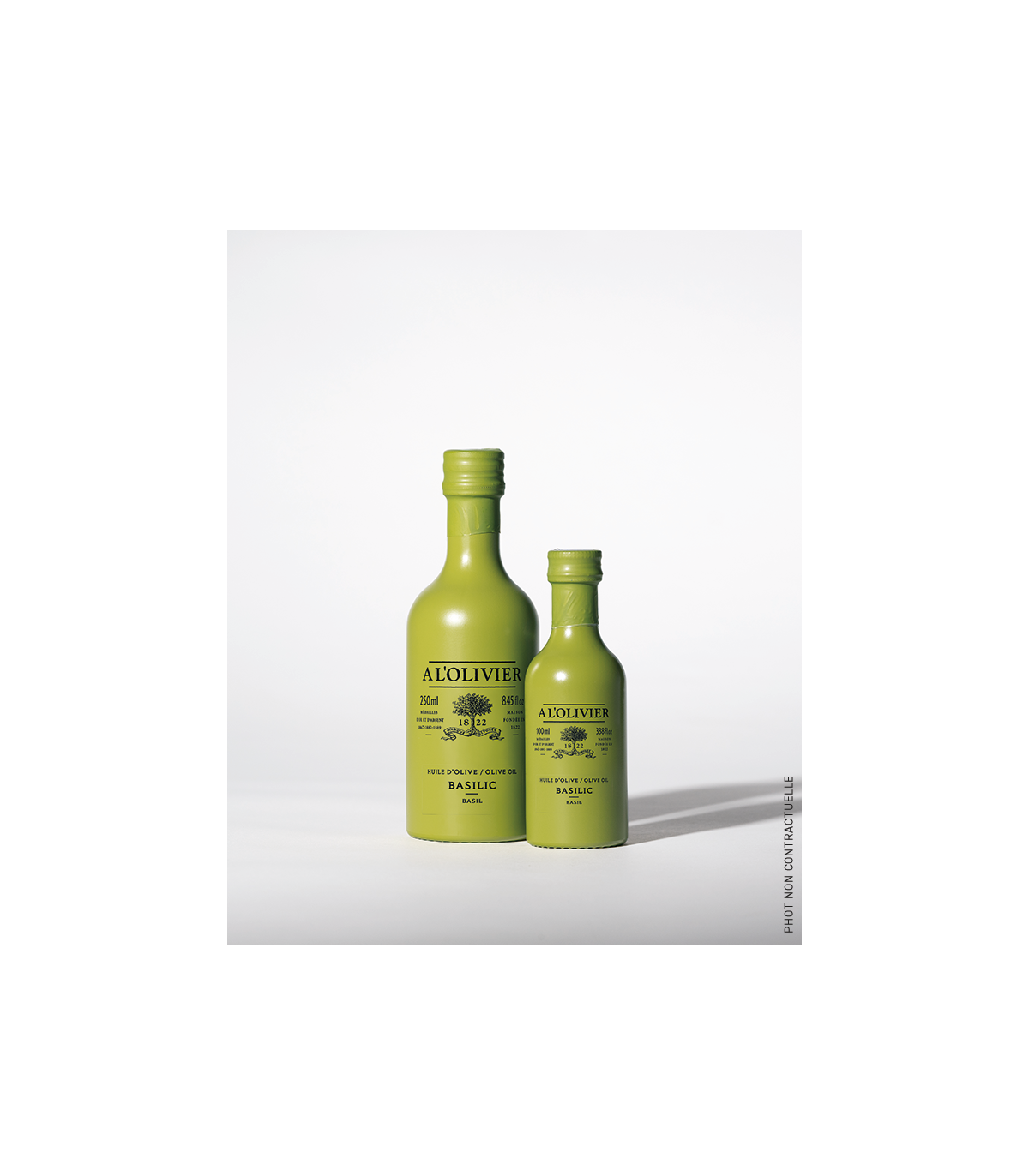 - PREPARATION CULINAIRE A BASE D'HUILE D'OLIVE VIERGE EXTRA 99% ET DE BASILIC. Huile d’olive vierge extra 99%, extrait de basilic 1% (82 g de basilic sont nécessaires à l’aromatisation d’1 L d’huile d’olive).